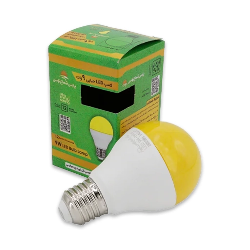 لامپ LED حبابی ۹ وات رنگی E۲۷ زرد پارس شعاع توس